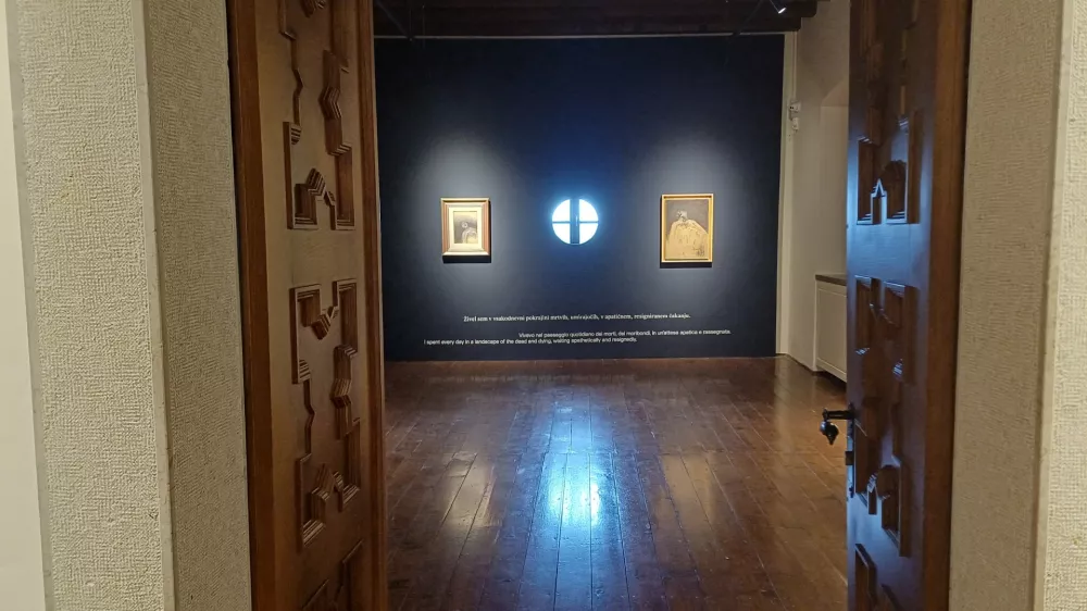 Štanjelska improvizacija, brez dodanih podnapisov, kataloga in vabil, razočara. Prezrimo obljube organizatorjev GO! 2025 o sodelovanju poznavalca Jeana Claira. Kras? Manjkajo mojstrske Kraške ograde iz zbirke Z. Kržišnika, vsaj eno olje s Kraško burjo in še kaj. Za razstavljenim Avtoportretom je Mušič iz okornih predvojnih iskanj prestopil v avtorja Potujočih konjičkov in iskanj Marca Pola. Ključni navdih je našel v Umbriji in Toskani, posebej v povedni stenski slikariji Ambrogia Lorenzettija v Sieni. Griči Umbrije, holmi okolice Siene in ožgano drevje zaledja Azurne obale so dodatno odmev odmeva krasa ter gomil iz taborišča. S krasom je bolj povezana zgolj manjša slika iz Kambičeve galerije Bela gora (1950). Izvrstno se v drugi sobi soočata podobi Umbrije, primeren prostor ima večja Sienska pokrajina. Manjka razvoj teh navidezno realnih krajin v znakovno geometrijo in naprej.