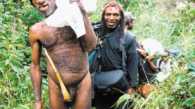 - Ua-ua-ua! nas je pozdravljal in se smejal z dvema preostalima zoboma. Ua-ua je sicer danijski pozdrav dobrodošlice, očitno se ga je naučil od tujcev, ki so ga s seboj prinesli iz doline. Spremljal nas je vse do poglavarjeve bajte, v katero smo se vselili za naslednji dve noči. Bila je lesena, grajena na štiri vogale in krita s pločevino. A tudi Titus, če sklepam po imenu, že krščeni poglavar Pileama, je raje stanoval nekaj korakov naprej, v tradicionalni džalijski kolibi. Pozdravit nas je prišel v zlikanih hlačah in skoraj sveži srajci.