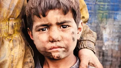Afganistanski deček, prvič objavljena fotografija posebej za razstavo v Trstu, je pretresljiva obsodba otroškega dela. Otroci so pomembna rdeča nit te razstave, pravi Steve McCurry.