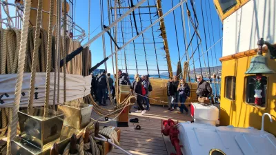 Zakaj bi Slovenci rinili na italijanske vojaške ladje, se bo morda kdo vprašal. Vespucci je že zaradi svojega sloga tradicionalnih jadrnic iz 18. in 19. stoletja zelo drugačna izkušnja. Resda se na njej usposabljajo mornarji pomorske akademije, a jadrnica medtem kot plavajoča ambasadorka Italije, Unesca in Unicefa obiskuje svetovna pristanišča. Pravkar se je vrnila v Sredozemlje po 20 mesecih potovanja okoli sveta: Honolulu na Havajih, Los Angeles, Darwin v Avstraliji, Tokio, Singapur, Mumbaj v Indiji, Džida v Savdski Arabiji ... To je le nekaj od njenih 35 postankov. Povsod pa privablja trume ljubiteljev ladij in zgodovine.