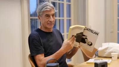 America je tipičen primer dela 64-letnega Maurizia Cattelana, ki je v svetu umetnosti zaslovel z umetnijami, ki izzivajo avtoriteto, trg in dober okus. Med njegova najbolj znana dela spadata Him (2001), skulptura klečečega Adolfa Hitlerja v otroški velikosti, ki je bila prodana za več kot 17 milijonov dolarjev, in Comedian (2019), banana, prilepljena na steno z lepilnim trakom, ki je dosegla ceno 120.000 dolarjev.