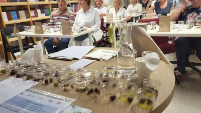 Roberto De Angelis in Milena Bučar Miklavčič oljkarjem, ki pripravljajo namizne oljke zase ali za prodajo na trgu, polagata na srce, da je treba vložene oljke nujno pasterizirati, to pomeni nekaj časa segrevati na temperaturi od 63 do 90 stopinj Celzija, saj gre za občutljiv izdelek. »Namizne oljke so namreč lahko zelo nevarne. Med letošnjimi smrtnimi žrtvami zaradi botulizma v Italiji so obravnavali tudi dva primera zastrupitve z vloženimi oljkami, kupljenimi v supermarketu. Če posumimo, da je s kozarčkom kaj narobe, če se pojavijo mehurčki, izdelek takoj zavržemo. Tudi o tem moramo ozaveščati potrošnike,« opozarja De Angelis, ki je sodeloval v ekipi mednarodnega sveta za oljke, ki je oblikovala metodo, kako ocenjevati kakovost vloženih ali namiznih oljk. De Angelis je bil gost 9. slovenskega festivala namiznih oljk minuli teden v Kopru, ki ga je pripravil Inštitut za oljkarstvo ZRS.