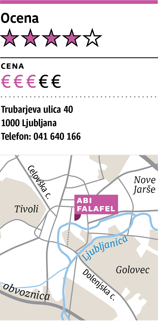 V navadnih časih velja Abi Falafel za oporišče tistih, ki si želijo na hitro pojesti neproblematično hrano z okusom Bližnjega vzhoda, ki skrbi tako za vegetarijance kot mesojedce. A njihov jedilnik skriva več, kot je na prvi pogled videti s Trubarjeve ceste.