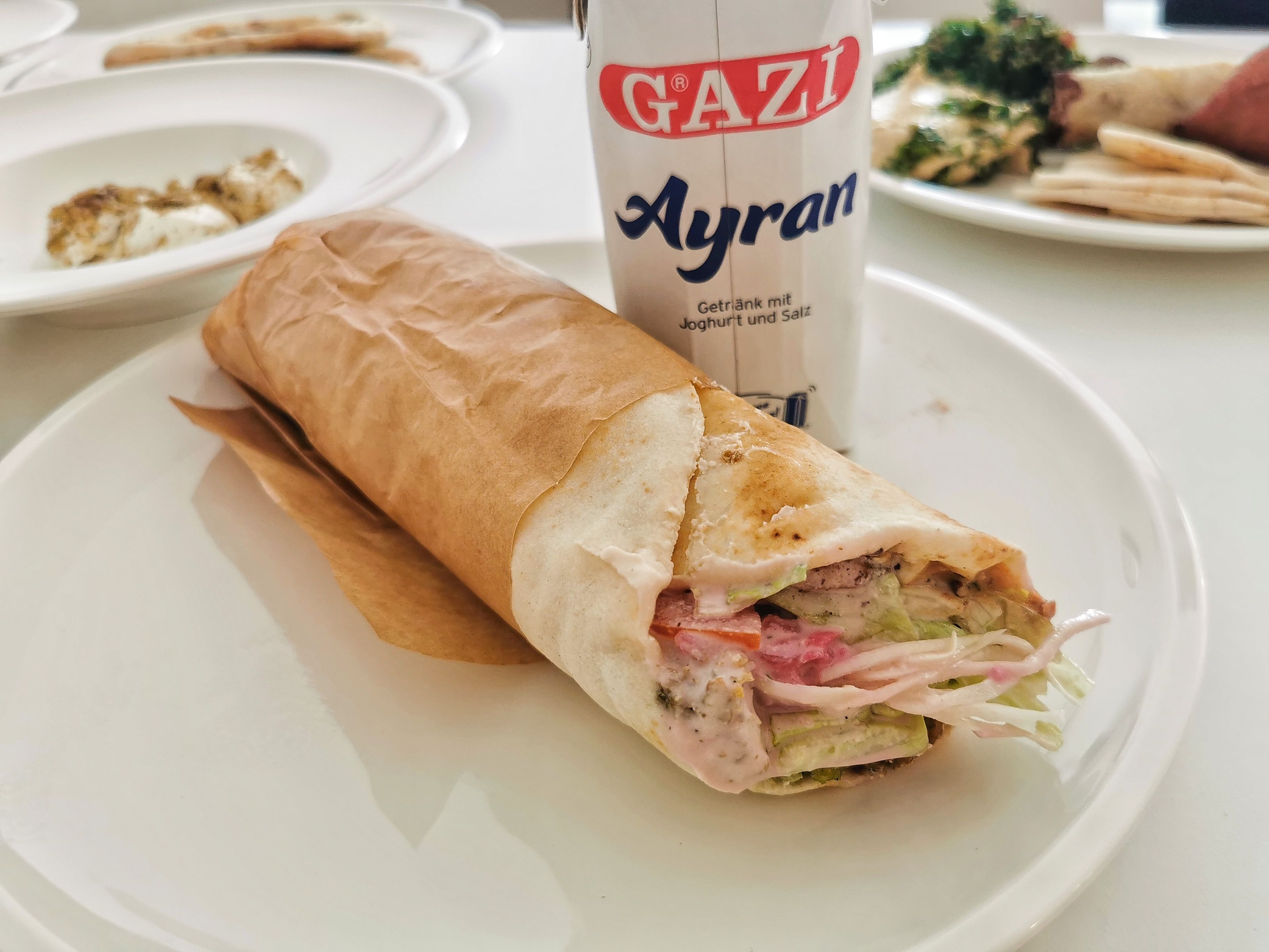 Ob pisanih jedeh prepričajo mala presenečenja, tako značilna za kuhinje bližnjega vzhoda. Pokusiti morate sicer tovarniško pakiran jogurtov napitek ajran, lebneh (kroglice kozjega sira, obogatene z različnimi začimbami in zelišči), foul (namaz iz boba in sezama) ali kruhke fatajer z različnimi nadevi… Po vsem, kar smo pojedli, že razmišljamo, kako bomo, ko se ukrepi umirijo in bodo odprli terase, sedli ob rob Trubarjeve ceste in si privoščili serijo teh malih jedi.