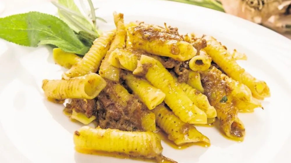 Priprava: Jagnječje stegno operemo, obrišemo in narežemo na manjše koščke. Korenček in zeleno narežemo na kocke. Posušena paradižnika drobno sesekljamo. Čebulo in česen olupimo ter čebulo drobno sesekljamo. V večjem loncu pristavimo olivno olje, sesekljano čebulo in olupljene stroke česna. Med mešanjem čebulo posteklenimo, dodamo narezano zelenjavo in zelišča. Med mešanjem pražimo, da tekočina izpari. Pomokamo, premešamo, zalijemo z belim vinom in kuhamo tako dolgo, da tekočina ponovno izpari. Praženi zelenjavi dodamo sesekljani paradižnik, zalijemo z jušno osnovo, posolimo in počasi kuhamo toliko časa, da se meso zmehča. Zelišča odstranimo, meso pa poberemo iz posode in shranimo na toplem. Omako počasi kuhamo do primerne gostote in izrazitega okusa. Dodamo meso, začinimo s sveže mletim črnim poprom, zavremo in odstavimo. Postrežemo s polento oziroma z domačimi testeninami, še najbolje pa z idrijskimi žlikrofi.