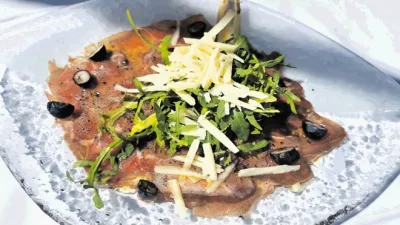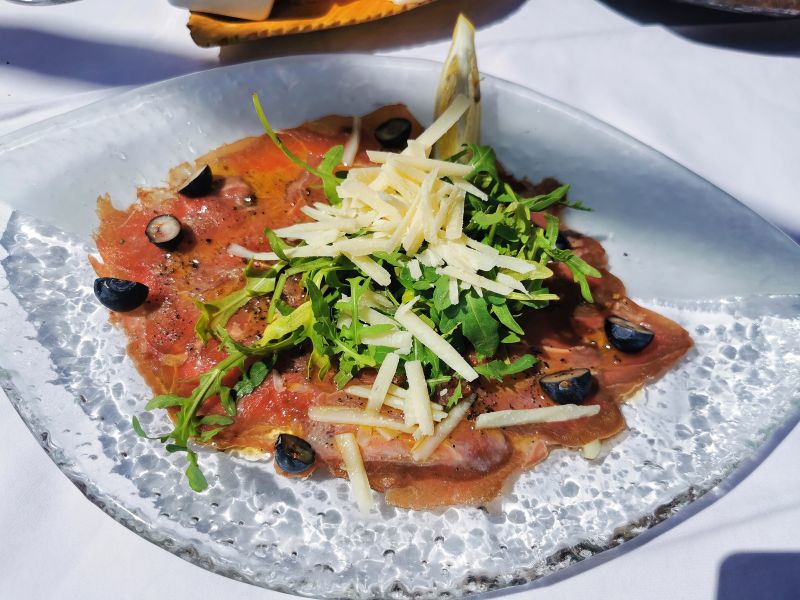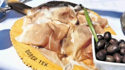 Šajna je ena tistih kraških postojank, ki enostavno ponujajo tisto, po kar gostje že desetletja hodijo v te kraje, ob tem pa vendarle dodajo še nekaj svojega. Recimo pozdrav iz kuhinje, ki je bil ob našem obisku solidna telečja pašteta na popečenem kruhu. A to za odpiranje apetita seveda ni dovolj, nujno je treba pokusiti kraški pršut (10 evrov) iz bližnje pršutarne, ki mu dodajo konkretno porcijo simpatičnih malih oliv. Pršut se lepo prilega k Jazbečevemu penečemu teranu (šest evrov), prav tako kot jelenov karpačo (12 evrov) z borovnicami, parmezanom in preveč rukole.