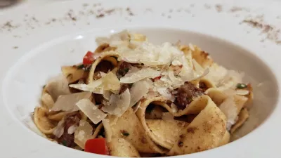 Tudi špageti z vongolami (18 evrov) so svojo nalogo opravili z odliko. Je pa v vlogi testenin vredno pokusiti velike pacchere, ki so se v zadnjem času predvsem po zaslugi kuharskih bratov Cerea iz slavne restavracije v Bergamu razselile po svetu, tudi po Sloveniji.