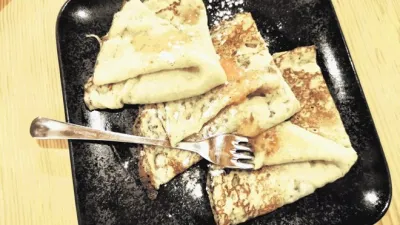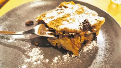 Za tiste, ki boste v te kraje, če ne prej, zavili pozimi, naj naštejemo še nekaj biserov rateške »domače« kuhinje: ocvrti lignji, čevapčiči, ražnjiči, vsi mogoči zrezki in ocvrti sir. Našteto smo tokrat preskočili in se počasi (proti koncu večerje je strežba skoraj povsem odpovedala, ker so stregli večjo družbo z nekega avtobusa) lotili povsem solidnih palačink z marelično marmelado in jabolčnega zavitka.