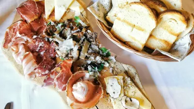 Enostavnemu povabilu je sledil istrski pjat, na katerem se je za 18 evrov zgodilo vse in še več, čeprav so ga namenili zgolj za dve osebi. Soočili so se domač sir, dišeč sir s tartufi, gobe z žara s sirom, nepogrešljiv domač istrski pršut, izvrstna vratovina, dve vrsti suhih salam, ne preveč mastna panceta, rukola za vitamine in popečen domač kruh, ki je ob oljčnem olju Arula pomagal prebavi. Hišna malvazija – na kozarec strežejo tisto od Prelaca – stane evro in pol, pivo je lahko sosedovo San Servolo ali manj lokalno Pan, za tri evre pol litra. Za šoferje strežejo zelo sladko oranžado Pipi in pašareto, ki jo v Pazinu polni Ferenčić. Kompleten uvod, ki ga ne bomo kar tako pozabili.