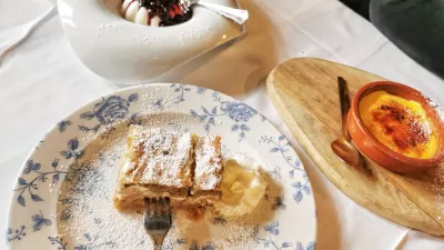 Jasno, na koncu imajo v konobi tudi sladice, in če hočete nekaj posebnega, so na mestu hišne gibanice, ki pa niso ravno prekmurske. Zdijo se veliko slajše in v njih prevladujejo orehi, zraven je še nekaj sestavin, gotovo pa ni maka. Še nekaj – res so nasitne, čeprav stanejo zgolj pet evrov.