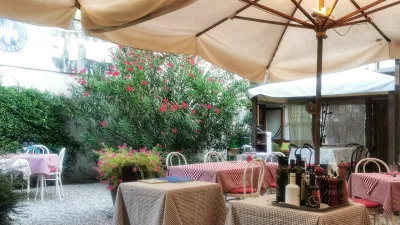 Rosenbar je stara furlanska oziroma slovenska gostilna. Malce spominja na Subana v Trstu, malo tudi na Devetaka. In podobno solidno je bila obiskana, čeprav je šlo za prvo soboto v avgustu, ko gredo naši sosedje tradicionalno na dopust. Na zelenem mediteranskem vrtu, ki je zvečer zlahka premagal vročino, so sedeli predvsem domačini in naročali iz menija, ki je napovedoval, da bo oseba porabila za večerjo (zgolj) od 25 do 40 evrov.