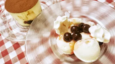 Še eno presenečenje je sledilo pri sladicah. Tako sladkega tiramisuja s tako poudarjeno kavo na dnu je skoraj nemogoče dobiti kjerkoli drugje, poskusili smo tudi krepak sladoled iz mlečnega cveta z amarenami in meringami. Celotna ponudba sladic je bila tokrat vremenu primerno usmerjena v sladoledne možnosti, v hladnejšem delu leta pa strežejo tudi svojo različico gibanice.