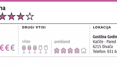V zadnjem času smo se navadili, da ribje restavracije in gostilne primerjamo s tistimi, kjer smo že malicali. Na eni strani so primerjave z najboljšimi modernimi slovenskimi, kamor gotovo sodita recimo Salicornia v Kopru in Dam v Novi Gorici, ali s klasiko, kamor gre recimo šteti Marini v Portorožu in Izoli. Občasni svetovalec, ki na različne načine sodeluje pri skupini Miha First, si je upal trditi, da lahko gostilno Godina, ki domuje v divaški občini, brez zadržkov primerjamo z najboljšimi klasičnimi ribjimi restavracijami. Pa smo šli pogledat.