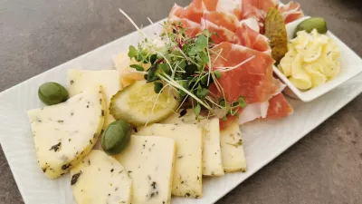 Verjeli ali ne, za pozdrav ali kar tako smo dobili kozarec oluščenih arašidov, ki so bili verjetno iz kake četrte države, nas pa je seveda bolj zanimal narezek, in v njem smo pričakovali tudi kakšno lokalno sestavino. Za zelo konkretnih 23 evrov smo dobili pršut San Daniele, dva sira, menda iz mlekarne Planika, a niso vedeli, za katere sire gre; v vsakem primeru je bil eden zeliščni, drugi pa zrel, v slogu parmezana. Pristavili so še polovičko debele kisle kumare, štiri banalne olive in maslo z zelišči. Morda smo malce krivični, a naj kar povemo, narezek bi lahko nosil ime »naši spomini na zajtrk v koči«, tudi zato, ker se je kruh, ki je pri taki hrani zelo pomemben, že zelo utrudil.