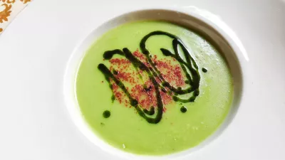 Ob nedeljah kuhajo obvezno govejo juho z rezanci, v kateri po gorenjsko ni bilo ne korenja ne mesa, zato pa malce preveč soli. Veliko bolj nam je ugajala gosta in učinkovita špargljeva juha s peteršiljevim oljem.