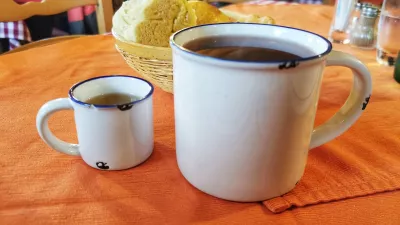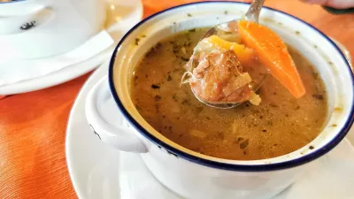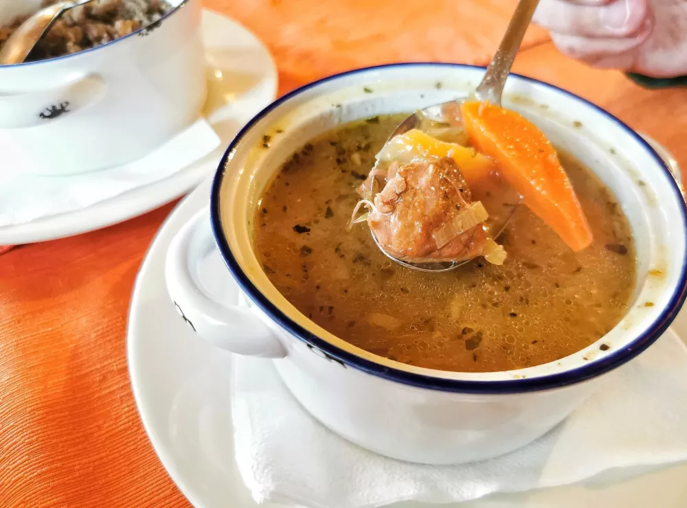 V začetku radi ob kruhu in domačih bombicah ponudijo tudi domačo pašteto, tudi te ni malo, potem pa so na vrsti krepke juhe, še raje enolončnice. Pokusili smo seveda konkreten odmerek vroče goveje juhe (štiri evre), ki ob takšnem vremenu mora biti na svojem mestu, a smo bili še veliko bolj navdušeni nad telečjo obaro. Okusna, gosta, s pravim presežkom telečjega mesa je imela pomembno spremstvo, porcijo pravih ajdovih žgancev z ocvirki. Boljših že dolgo nismo pokusili.