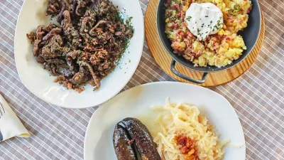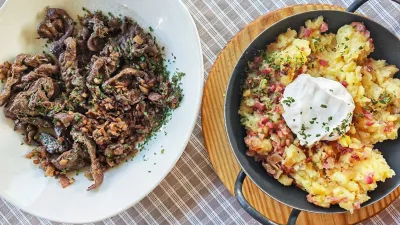 Morda nad ponudbo nismo bili dovolj navdušeni v uvodnih trenutkih, nas je pa potem zadovoljila krvavica, prava, velika, naša favoritinja, ki je nikoli ne zavrnemo. Za deset evrov jo podložijo le z zeljem, druge priloge, recimo praženi krompir ali žgance, je treba naročiti in seveda plačati posebej. Mi smo si vzeli kmečki krompir s slanino, čebulo in kislo smetano (devet evrov, da, kar devet evrov). V nasprotju s krvavico so popolnoma razočarala pražena jetrca. Bila so trda in sprijeta, da jih je bilo tudi z nožem težko ločiti. Kdo ve, morda jih narezana spravijo že v zamrzovalnik. In jasno, za enajst evrov ob čebuli, ki je tako ali tako del recepta, ne ponudijo drugega. Saj je tu kruh, so pojasnili. Mi pa smo samo molili, da nam istih vilic, ki so nabadale najprej feto in potem čebulo, ne bo treba uporabiti še pri vršiški kremšniti, lokalni sladici, ki na čase Bojana Križaja in Jureta Koširja spominja bolj kot pleskavice (15 evrov) in kalamari (16 evrov), ki jih v mnogih oblikah tudi ponujajo vsega hudega vajenim gostom.