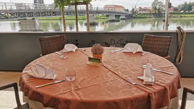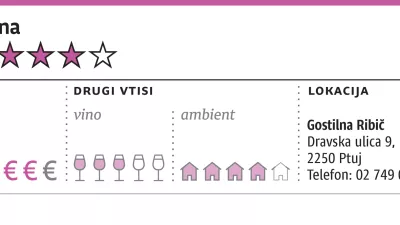 Verjetno je treba Ribiča obiskati, ko je toplo in ko je mogoče sedeti na urejeni terasi ob Dravi. Nam je to v začetku jeseni uspelo, kar se vidi po slikah, in od blizu smo gledali v lenobno Dravo ter se spraševali, ali na trenutke ne teče celo nazaj proti Avstriji, ob tem pa razmišljali, kaj popiti. Na sicer majhni, a učinkoviti vinski karti je nekaj izvrstnih vin po ne previsokih cenah in pri vseh so navedene tudi cene za kozarec. A natakar je bil kategoričen. To ne drži, večina vin je na voljo le, če vzamete celo steklenico. Zakaj torej vinski list laže, ni znal povedati. A ga z zoprnimi vprašanji in podvprašanji nismo hoteli preveč vznemirjati, vrt, ki je tisto soboto sijal v soncu in občasno skoraj pokal po šivih, je bil kar lep izziv za dva natakarja, oba sta imela veliko dela.