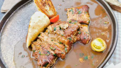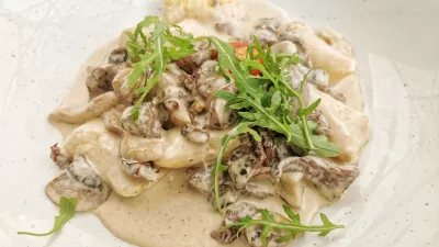 Obilna in okusna, podobno kot kombinacija pečenih bukovih ostrigarjev in jurčkov s panceto ter prepeličjimi jajčki, ki jih postrežejo na popečenem kruhu s sirom. Naj se kar ponovimo, za takšen denar (manj kot šest evrov) takšne gobove jedi ni lahko dobiti v naših krajih, še posebej če računate, da so zraven še prepeličja jajčka. Je pa res, da so se bukovi ostrigarji v ponudbi še nekajkrat pojavili v drugih oblikah in podobno poceni.