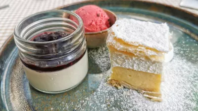 V začetku smo že omenili, da na Ptuju obstaja gostilna, ki nima sladic. Včasih jih celo imajo, a jih neradi ponudijo. Še kar čudno. Za tiste, ki tam ostanejo z dolgim nosom, je lepa priložnost obisk Rozike, kjer ne le da imajo sladice, ampak jih lahko postrežejo tudi v kompletu s skupnim imenom sladki krožnik. Krožnik združuje panakoto, manjšo kremno rezino in jagodov sladoled na čokoladnem drobljencu. Za štiri evre in pol nikjer v svobodnem svetu gotovo ne dobite več sladičevja. In če je za koga to še vedno premalo, imajo v rezervi zgleden višnjev zavitek na sladki vaniljevi kremi (3,9 evra). V gostilni, kjer blestijo s sijajnimi pregovori in reki, ki jih radi napišejo na priročne table (tale je lepa: »Špricari so leteli ko dež po mareli«), na koncu ponudijo domačo viljamovko, če seveda še imate dovolj energije za polnjenje že tako polnega trebuha.