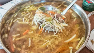 Legendarna smetanova juha z nekaj kapljami kisa je pri Antonu okrepčana le z jušnimi kroglicami, podobnimi zlatim, le da so precej večje, ne pa tudi s kakšnimi svinjskimi nogicami. Drugi jušnik, v katerem je bila prava goveja juha, je vseboval res konkretno dozo mesa in rezancev, da ne govorimo o množici različne jušne zelenjave. Ena boljših, gotovo pa najgostejša goveja juha, kar smo jih pokusili v zadnjem času.
