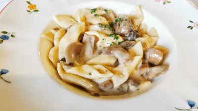 Mimogrede, če vzamete celo porcijo, so najcenejše testenine v Malem selu osem, najdražje, tiste s tartufi, pa 20 evrov. Bolj kot za tartufe nam je bilo žal za testenine s kokošjim golažem – na vrsto pridejo naslednjič, vsega enostavno nismo mogli naročiti.