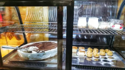 Kot rečeno, pri Jelenovem hramu lahko jeste, kolikor hočete in dokler lahko, cena je vedno enaka. In to velja tudi pri sladicah, v hladilnikih jih je pol ducata, škoda, da niso vse narezane na porcije, saj ni povsem dobro, da neuka sladkosneda publika sama reže torte in tiramisuje.