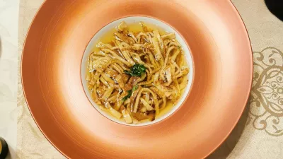 Po stari navadi smo se najprej lotili hladnih možnosti. Narezkov se naša skupina navadno ne brani, saj v enem stavku povedo več kot nekaj hladnih jedi, toda tokrat smo preskočili recimo italijanski pršut in se raje lotili hišne pujskove, s konjakom flambirane paštete z bučnimi semeni, zagledali pa smo se tudi v karpačo, ki ga pripravljajo kar iz govedine vagju. Kar hkrati pomeni, da gre za razmeroma majhno porcijo s češnjevimi paradižniki, prelivom iz sušenega paradižnika, baziliko, parmezanom in nekaj rukole. Skoraj preveč elegantna jed, a kot rečeno, temu primerno ne ravno obilna.