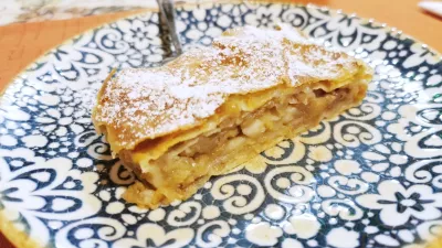Po vsem tem smo pojedli še nekaj – glavna jed je bila zobatec, pečen na dva načina, najprej na gradeli in nato v pečici, kar je menda skrivnost kuhinje. Nič več. Velika, res sijajno pečena in nič izsušena riba je predstavljala zadnji del naše večerje, spremljala jo je blitva s krompirjem pa tudi Marofov beli križ, lepa zvrst modre frankinje in zweigelta. Ko smo že odpenjali pasove, pa smo izvedeli, da imajo ravno Pod smrekco tudi najboljši jabolčni zavitek. Vsak polovičko smo zmogli in morda ni najboljši v Sloveniji, je pa gotovo med prvoligaši.