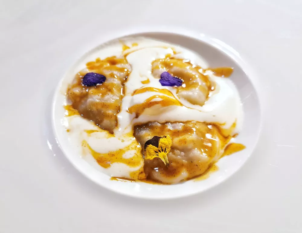 Nič manj posebni niso bili ravioli s krompirjem in dimljeno rikoto, postreženi v timijanovi juhi in z mleto svinjino. V hiši pa je bila ob našem obisku tudi goriška vrtnica. Radič, ki ga je mogoče pripraviti na nešteto načinov, so na mizo prinesli v zelo preprosti različici s fižolom, kuhanim jajcem in drobtinami s svinjsko mastjo, za spektakel pa je poskrbel šef kuhinje, ki nam je pri mizi namešal majonezo in z njo prelil jed.