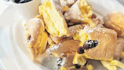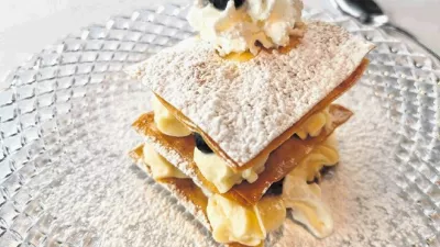 Pa še nekaj je treba priporočiti. V Kraljevi hiši na Bledu pripravljajo najboljši cesarski praženec oziroma šmoren v Sloveniji. Pravzaprav ne gre za originalen recept, saj ga ne natrgajo iz debele palačinke, ampak iz omlete. Brusnična marmelada in mleti sladkor pa samo potrdita zmago ene najboljših sladic pri nas. Prav tako odlična, a vseeno v senci praženca je variacija blejske kremšnite, ki ima v primerjavi s klasiko več nadstropij in veliko sadja.