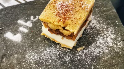 Spet manj popuščanja je pri sladicah. Čeprav so lažje kot pri nas na celini, je hišna gibanica s skuto in jabolki še vedno gibanica, še ena možnost, na katero posebej opozorijo, je sladek sorbet s pelinkovcem, zmagovalni med sladicami pa je vseeno sladek in dišeč krokantino z rumom.