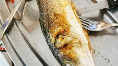 Je pa treba priznati, da se je naša ekipa proti koncu vseeno odločila za malce bolj omejeno količino glavnih jedi. Stavili smo na porcijo nepretresljivih lignjev z žara in na ne ravno majhnega brancina, ki so ga prinesli na ogled, spekli in potem očistili, razdelili na krožnike skupaj s pečeno polento, zelenjavo in krompirjem.