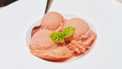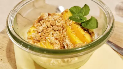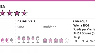 Pri jedeh, ki sodelujejo na jedilnem listu restavracije na Opčinah, ni velikih vplivov tujine ali celo kakšne eksotike, zato smo se kar malce začudili, da so k sladicam ponujali predvsem vina, ki nimajo zveze ne s Krasom ne z Brdi oziroma Colliem. Passito Ben Rye s Sicilije je spremljal sladko angleško vaniljevo kremo z zdrobljenimi amareti, velik pistacijev semifredo in osvežujoč sorbet z malino.