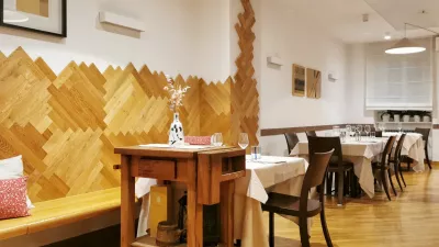 Sledilo je rahlo razočaranje, morda edino tisti večer, pa vendar. Ljubljanski zrezek pripravljajo s svinjino, zato ga nismo naročili, a nas je po drugi strani prepričal biftek, ki stane za Slovenijo nepredstavljivih 22 evrov. Škoda, da ga postavijo na vroč kamen, kjer se še naprej peče, bolje bi bilo, da bi ga do želene stopnje obdelali v kuhinji, tako pa je naš srednje pečeni biftek sčasoma postal prepečen.