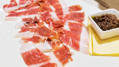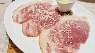 Še nekaj, Valeria 1904 ni lokal, kjer bi imeli kakšno posebno filozofijo, kot nam jo radi ponujajo v marsikateri moderni kuhinji. Kuhajo enostavno, sezonsko in pri sestavinah dejansko pazijo, da postrežejo najboljše in obenem po ugodnih cenah. Veliko nižjih kot nekaj kilometrov vzhodneje na slovenskem Krasu. Skratka, pri Valerii je bilo dobro in poceni – že od samega začetka, ko so ponudili klasičen pršut mangalice (18 evrov) z oljčnim namazom ali oljčno pašteto, če se sliši boljše. Na roko narezan masten pršut je imel za spremljavo na sosednjem krožniku tudi kuhano tržaško različico z domačo gorčico in malo naribanega hrena (14 evrov). Velikima porcijama mesnin, ki so se topile v ustih, so dodali kruhove bombice.