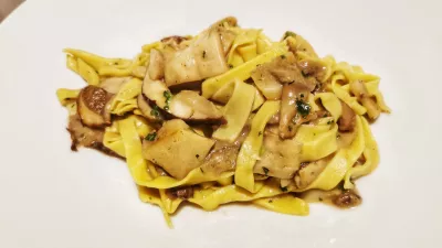 Po penečem lombardijskem standardu smo se z vinom vrnili na tržaške konce, kjer živi in dela lokalni vinski heroj Edi Kante. Njegov chardonnay z očitnim imenom Bora (burja) velja za najboljšega ob meji in tudi letnik 2016, ki so ga ponujali za nemajhnih 70 evrov, nikakor ni razočaral. Z nami se je družil naslednjo urico, ko so na mizo nosili še druge predjedi. Tudi orjaško in nasitno tržaško joto z zeljem, fižolom in krompirjem (10 evrov) ter domače rezance, ki jih opremijo z nepogrešljivimi jurčki (16 evrov).