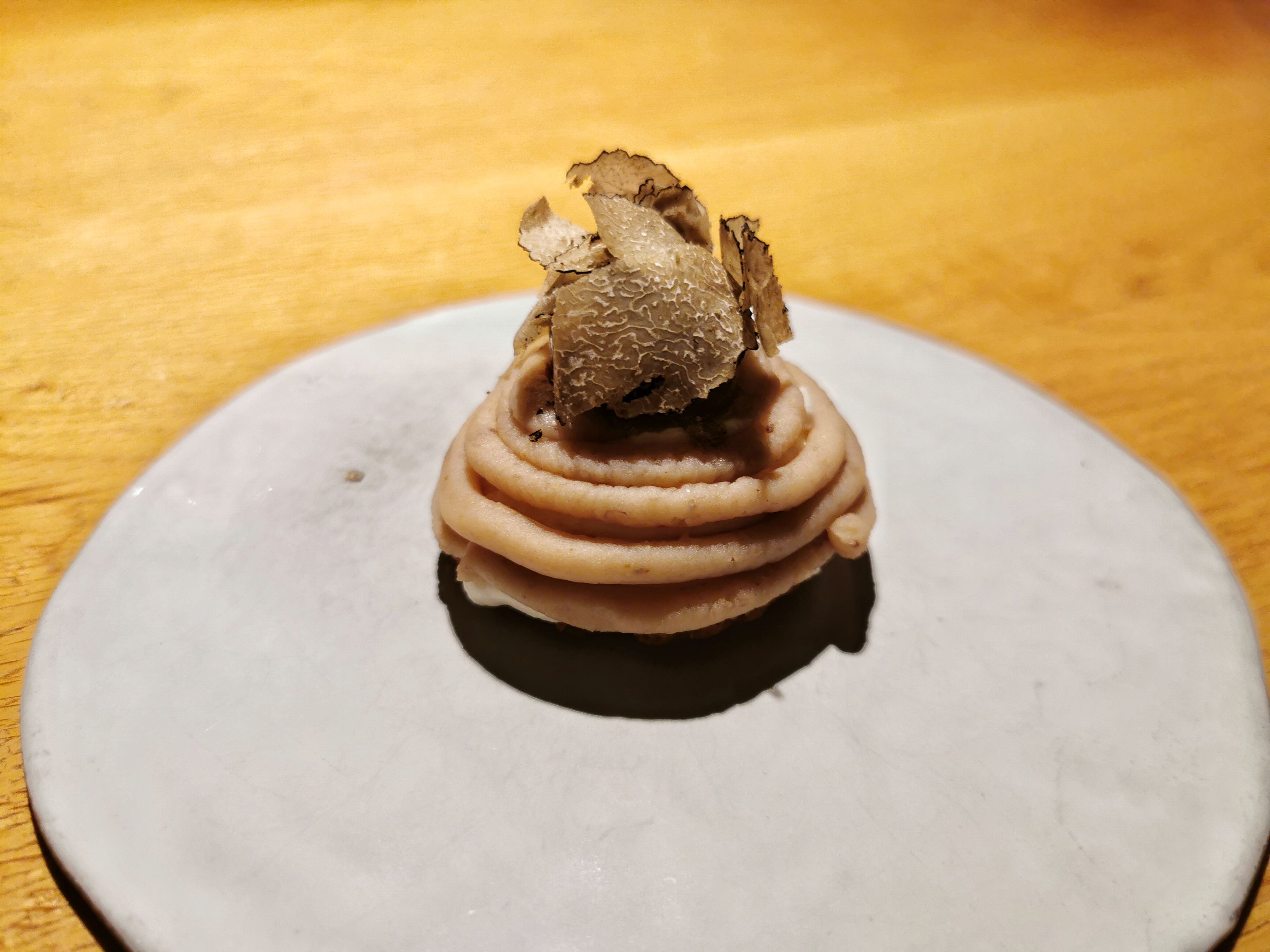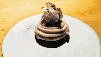 Med grizljanjem smo se odločili za krajši degustacijski meni s sedmimi jedmi, nekaj pozdravi in odzdravi za 65 evrov ter preskočili vinsko spremljavo za 35 evrov na osebo, ki jo sestavljajo bolj posebna vina ali kar posebnosti. Namesto tega smo spili steklenico Brandulinove malvazije, nato pa še modri pinot novozelandsko-štajerske kleti Heaps Good Wine.