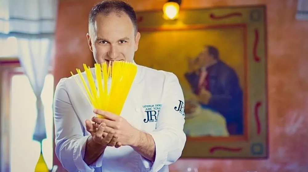 Jure Tomič, Ošterija Debeluh, Brežice: Beli Debeluh z zlatimi testeninami in vini