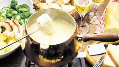 Morda pa lahko pripravimo čokoladni fondi, ki je baje ameriškega izvora, a so ga izumili tamkajšnji švicarski izseljenci. Izvirni recept vsebuje mlečno čokolado znamke Toblerone in malo jedilne čokolade. Ko to v caquelonu previdno in počasi stalimo, dodamo smetano in gladko razmešamo, tik preden postavimo na mizo, pa dodamo še kakšno šilce češnjevega žganja. V takšen fondi (ki ga na mizi ogrevamo kvečjemu s čajno svečko) pomakamo rezine banane, krhlje mandarine, jabolka, kivija…, poleg tega pa še razno čvrsto pecivo, biskvit in španske vetrce. Pri vsem skupaj velja poudariti, da rokovanje z živim plamenom na mizi ni priporočljivo za nerodneže in tiste, ki kanijo globoko gledati v kozarec, saj so posledice lahko hude. Pa srečno!