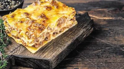 Čebulo, korenček in zeleno drobno sesekljamo in skupaj popražimo na olju. Dodamo sesekljan česen in ko ta zadiši, še meso, ki ga med mešanjem pražimo, da postane drobljivo. Dodamo paradižnikovo mezgo in vse začimbe, na hitro popražimo in zalijemo s paradižnikovim pirejem in vinom. Zelo počasi kuhamo vsaj dve uri. Pečico segrejemo na 200 °C. Globoki pekač namažemo in prekrijemo s plastjo listov za lazanjo. Nanje razdelimo del mesne omake, del mocarele, posujemo z delom parmezana. Postopek ponavljamo, da porabimo vse sestavine. Nad zadnjo plastjo testa naj bosta mesna omaka in parmezan. Pečemo dobre pol ure, pečico izključimo in lazanjo v njej pustimo še deset minut.
