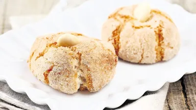 275 g mandljev stresemo v sekljalnik, dodamo 150 g sladkorja in zmeljemo v moko z vidnimi drobci mandljev. Primešamo postrgano vsebino stroka vanilje in bikarbono. Dodamo rahlo spenjena beljaka in zmešamo v testo. Postavimo ga v hladilnik za 20 minut. Pečico segrejemo na 160 °C. Preostali sladkor stresemo v skledico. Zajamemo za žličko testa in ga med navlaženimi dlanmi oblikujemo v kroglico. Povaljamo jo po sladkorju in položimo na pekač, obložen s papirjem. Med njimi pustimo malo prostora. Na vsako blago vtisnemo olupljen mandelj in pečemo 20 minut, da se piškoti obarvajo kot bela kava. Ohladimo jih na pekaču.