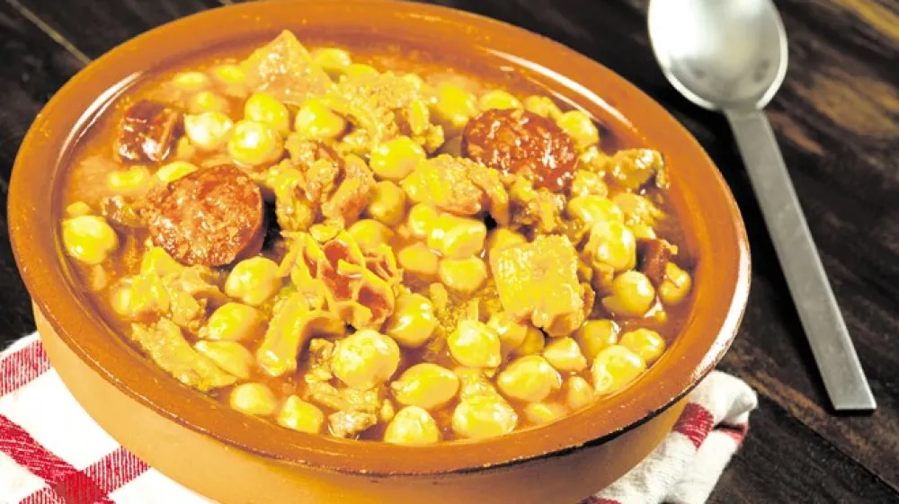 4V večjem loncu na olju z malo soli skupaj počasi spražimo čebulo, korenček in koščke klobase. Na koncu dodamo česen in ko ta zadiši, posujemo s papriko, premešamo in takoj zalijemo z vinom. Ko se tekočina ukuha na polovico, dodamo kuhano čičerko, paradižnikov pire in 3 dl vroče vode. Dobro premešamo in med občasnim mešanjem odkrito počasi kuhamo pol ure, da se jed precej zgosti. Nekateri v to jed dodajo še narezane črne oljke! Začinimo s sveže zmletim poprom, lonec postavimo na mizo in postrežemo s svežim kruhom. In seveda izbranim vinom!