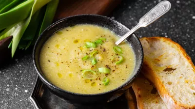 Por temeljito operemo in ga narežemo na tanke kolobarje, čebulo pa sesekljamo. V loncu na nizkem ognju segrejemo maslo in oljčno olje. Dodamo drobno sesekljano čebulo in ščepec soli ter jo pražimo, da postekleni. V lonec stresemo por in na kocke narezan krompir in ju nežno pražimo in mešamo deset minut, nato pa zalijemo z jušno osnovo po želji, tako da je zelenjava pokrita. Ko juha zavre, zmanjšamo jakost ognja in kuhamo še dvajset minut, da se zelenjava povsem zmehča, nato jo s paličnim mešalnikom zmešamo do gladkega. Preden jo serviramo, dodamo še smetano in jo začinimo s soljo in poprom ter po želji ščepcem muškatnega oreščka, postrežemo pa z jušnimi kroglicami ali krutoni.
