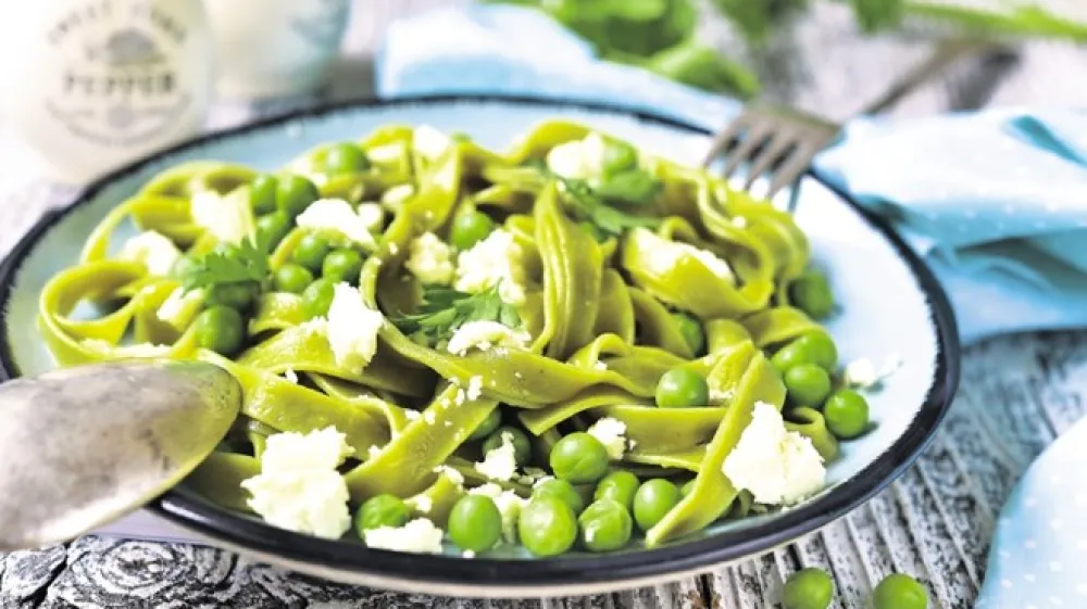 Resda mladi grah občasno prodajajo tudi v veleblagovnicah, a tam velja biti oprezen. Kako naj bo namreč svež, ko pa so ga tedne dolgo tovorili s povsem drugega konca sveta. Denimo iz Zambije, kakor je mogoče prebrati na deklaraciji. Največ graha sicer pridelajo v ZDA, Rusiji, na Kitajskem in v Indiji, ampak s čim vse morajo biti naphani krhki zeleni stroki, da brez težav prenesejo tako dolgo pot, najbrž niti ne želimo vedeti. In po okusu se prav gotovo ne more kosati s tistim, ki je bil obran sinoči ali davi zarana, najpozneje drevi pa bo že na našem krožniku. Grah naj bi bil starejšega izvora kot fižol, arheologi namreč menijo, da so ga naši predniki uživali že pred nekaj tisočletji, njegova domovina pa je Azija. Obstajajo številne vrste, pri nas je najbolj cenjen veliki zeleni grah, ki mu pravimo tudi sladki ali cukrar. Slednji je zelo primeren za konzerviranje oziroma vlaganje v kozarce. Grah vsebuje precej hranilnih snovi in veliko vitamina A ter celotno skupino vitaminov B. Vsebuje tudi pomembne minerale, železo, fosfor, kalij, magnezij in preostale elemente, zato ga strokovnjaki priporočajo še zlasti vegetarijancem, saj v prehranskem smislu uspešno nadomesti meso. Grah velja za vrtno zelenjavo z najvišjim deležem beljakovin, zato sodi tudi na seznam najprimernejših živil za športnike. Poleg tega vsebuje veliko vlaknin, kar ugodno vpliva na presnovo. Grah kuhamo čim krajši čas, sicer večina vitaminov propade, lahko pa zobljemo kar surovega. Zrna oluščimo iz strokov, jih operemo in dobro odcedimo. V dobro zaprtem loncu jih v majhni količini slane vode kuhamo največ nekaj minut, vsake toliko kakšno zrno pokusimo, da ga ne kuhamo predolgo. Vodo od kuhanja, če je ne potrebujemo takoj, prihranimo, denimo za zalivanje rižote, ohlajena pa tekne zoper žejo. V nasprotju s stročjim fižolom in mladim bobom, kjer pohrustamo zrnje in še mlad strok zraven, grahovega stroka praviloma ne uživamo, saj je občutno bolj nitast. Ena tudi med celinskimi Slovenci najbolj priljubljenih istrskih branjevk sicer vselej, ko proda sveženj grahovih strokov, rada pove, da je nekoč po televiziji gledala Japonce, ki so pripravljali prav grahove stroke, ampak po njenih izkušenih besedah to ne more biti kaj prida. Izluščeno zrnje graha pa lahko seveda uporabimo za različne omake, zelenjavne in mesne, grah segrejemo na maslu in ga ponudimo kot prilogo k ribam ali mesu, kuhan grah pretlačimo v omako ali juho, pozimi ga konec koncev vmešamo tudi v tako staromodno in zagatno jed, kot je francoska solata. Cenjen pa je tudi v kombinaciji z rižem, mlado čebulo, koruzo, gobami in korenjem. Skupaj z vrtnimi šparglji, ki jih je v tem času na pretek, korenjem ali šampinjoni je izredno okusna univerzalna priloga. Odličen je tudi s špinačnimi rezanci in mladim sirom ali feto (na fotografiji). Dobro se ujema z zelišči, kot so peteršilj, bazilika, meta, krebuljica, kreša in pehtran. In od kod grahu ime? Menda izvira iz staronemške besede giersch, od koder morda izvira tudi slovenski priimek Geršak (če že ne od besede graščak), ki bi v tem primeru pomenil enako kot Grahar ali Grahovec. O takšnih temah je prav prijetno razmišljati med dremežem po kosilu, ko smo se najedli slastnega mladega graha. Zlasti če si ga privoščimo v družbi njegovega sorodnika boba, ki je tudi že na voljo, in mlade čebule, kar so povsem sezonske glavne sestavine za izjemno spomladansko mineštro po tokratnem receptu!