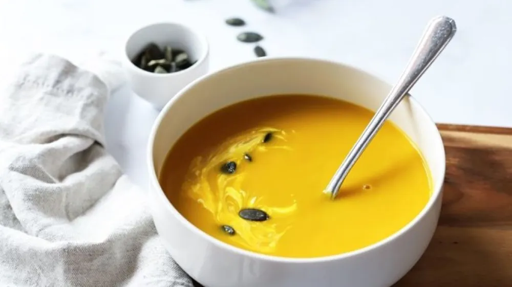 Ta čudovita juha vas bo grela jeseni in pozimi. Naredite več litrov te juhe, jo razdelite na porcije, ohladite ter zamrznite. Vedno, ko vam bo zadišala, vam bo na razpolago. Pred serviranjem jo lahko okrasite s kislo smetano ali grškim jogurtom, bučnimi semeni in po želji še s popraženimi lističi svežega žajblja.