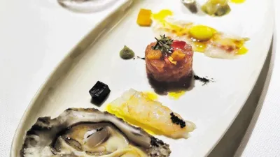 Mi smo se tokrat odločili za hite, predvidenih je osem jedi, ki pa se pozneje izkažejo za vrtiljak veliko več grižljajev in okusov. Že od samega začetka, ko za pozdrav poskrbijo topla peciva, belo, s sezamom in s sipo, ki jih popestrijo oljčno olje, kapljica balzamičnega kisa in inčun. Zraven je koruzni tramezin z bakalarjem, pa že kultni Damov »tartuf« oziroma kroglica skute s tartufi in drobnjakom, povaljana v drobtinah sipinega črnila.