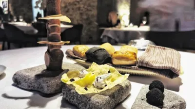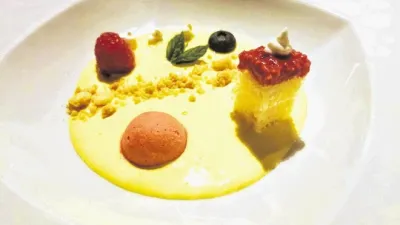 Limonino krostato avtorsko razstavijo v nekakšno futuristično pokrajino z malinami, borovnicami, vaniljevo kremo, biskvitom, drobljencem, meringami in meto. Za še bolj sladkosnede zatem na mizo prispejo čokoladni bomboni s solnim cvetom, za tiste, ki se ne boste vozili daleč (vrhunsko opremljene sobe v njihovem butičnem hotelu stanejo okoli 180 evrov) imajo pestro izbiro mednarodnih žganic, pa naj gre za grappe, konjake ali prestižne rume.