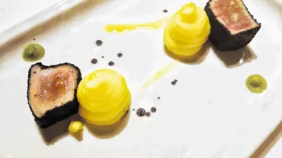 O okusih je sicer težko razpravljati, a vsaj naša ekipa si težko predstavlja gosta, ki bi bil pri Damu nezadovoljen. Razen če ne mara morskih prebivalcev. Pravzaprav se je zdela še največja težava, da bi lahko opečene tune v sipinih drobtinah, ki ji dodajo vasabi in limonov pire, pojedli še enkrat toliko. Odlično ribo smo zalili s požirkom sauvignona Ronco delle Mele iz čezmejne kleti Venica in se prepustili sorbetu z okusom mojita, ki je napovedoval sladico.