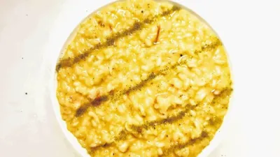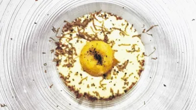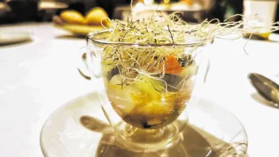 Jedi so zanimive in mojster le redko pretirava s svojimi izleti, raje poudarja sestavine. In to razkošne. Ocvrt rumenjak postavi na kremast krompirjev pire, mu doda dehidriran pršut in, jasno, tartufe. K temu se odlično prileže kozarec Jermannove (tokrat slovenske) rebule Visvik – iz Višnjevika, jasno. Jermannova kapljica je eno najdražjih vin na karti (90 evrov), zato ima čast pospremiti tudi klasično predjed Michelinovih restavracij: rižoto. Ta ima v Damu različne izvedenke, tokrat je bila s kozicami in peteršiljevim prahom, predvsem pa tako kremasta, da bi jo človek kar jedel in jedel.